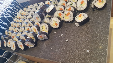 위에 보이는 김밥이에요 ,아이들은 매일매일 김밥 최소 5개씩은 먹었어요